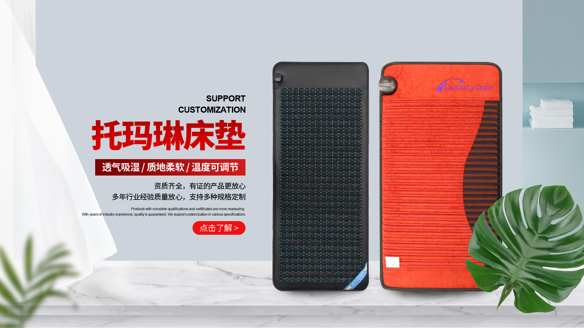 現(xiàn)主要產(chǎn)品有玉石床、溫?zé)嵊袷矇|、溫?zé)徭N石床墊、溫?zé)嶙鴫|、溫?zé)峥勘臣岸喾N玉石保健制品等
